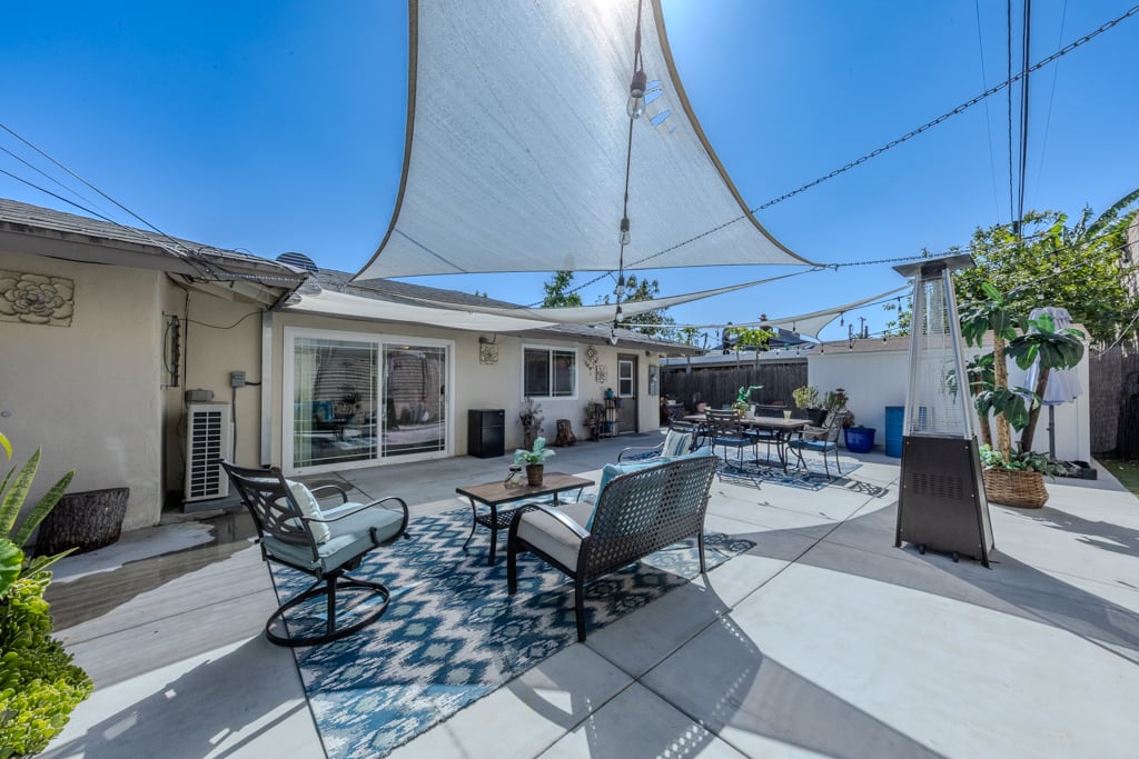 Backyard fully concreted for low-maintenance use